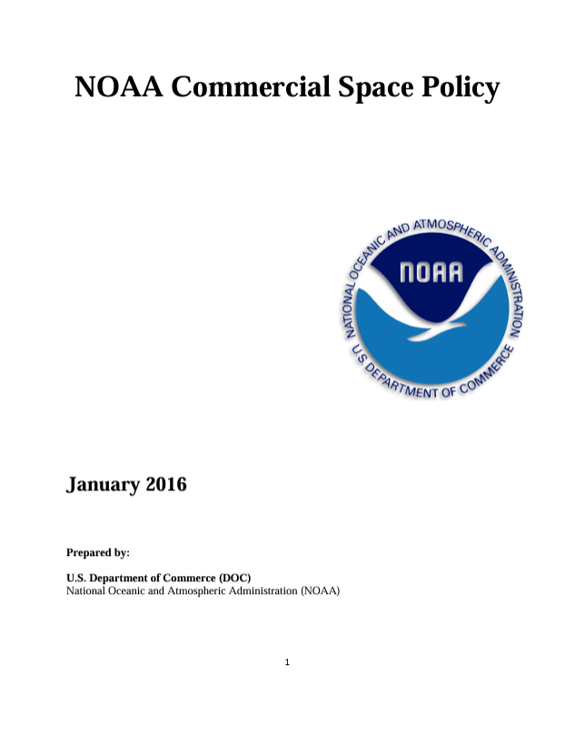 On January 8, 2016, NOAA issued its Commercial Space Policy, which sets a broad framework for use of commercial space-based approaches for the agency.